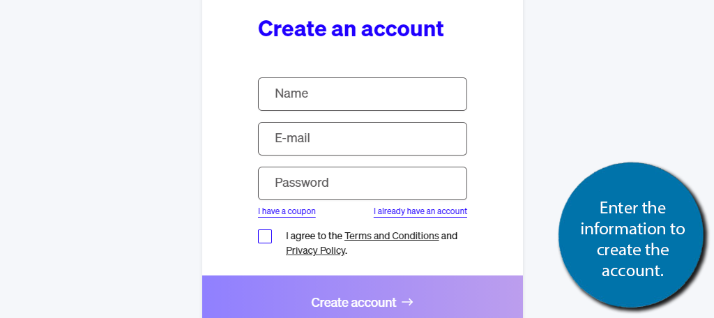 This will take you to the WordProof website and ask you to enter a name, email, and password. Check the box to agree and click on the “Create Account” button.