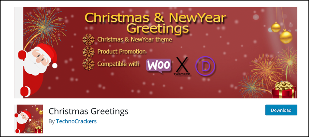Christmas Greetings is a great Christmas plugin that is also compatible with WooCommerce. The plugin makes all sorts of great little features available. You can use these to bring a lot of holiday joy to your website.