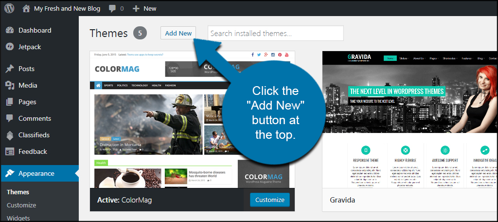 To find themes that accentuate favicon use, click the Appearance function in WordPress. Your list of themes will be the default screen.