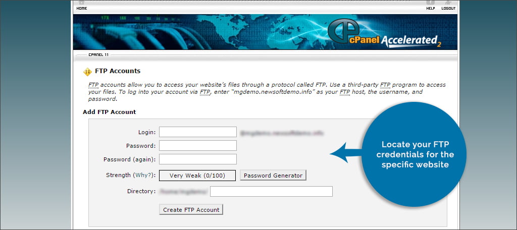 Locate your FTP credentials for the specific website.