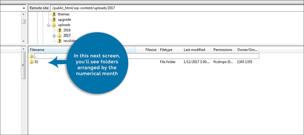 Now, you’ll see a collection of folders labeled by years. WordPress will time-stamp uploads according to when they were sent to the system. Find the current year and open the folder.