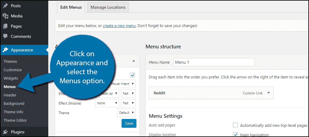 Click on Appearance and select the Menus option.