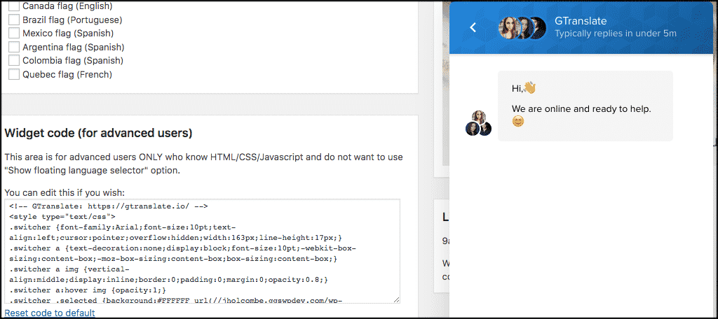 GTranslate also has a very unique option not available in most plugins. They have a built-in live messaging system that you can use to get help or ask questions when needed.