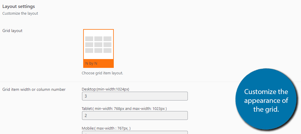 The Layouts section is dedicated to choosing a layout, which you should already have available from the previous steps. Just pick the one you want to use. The next three sections determine the way the grid will appear.