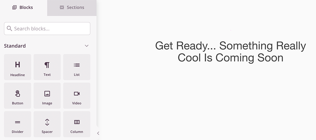 Once you click on the coming soon page option, a drag and drop page builder will pop up.