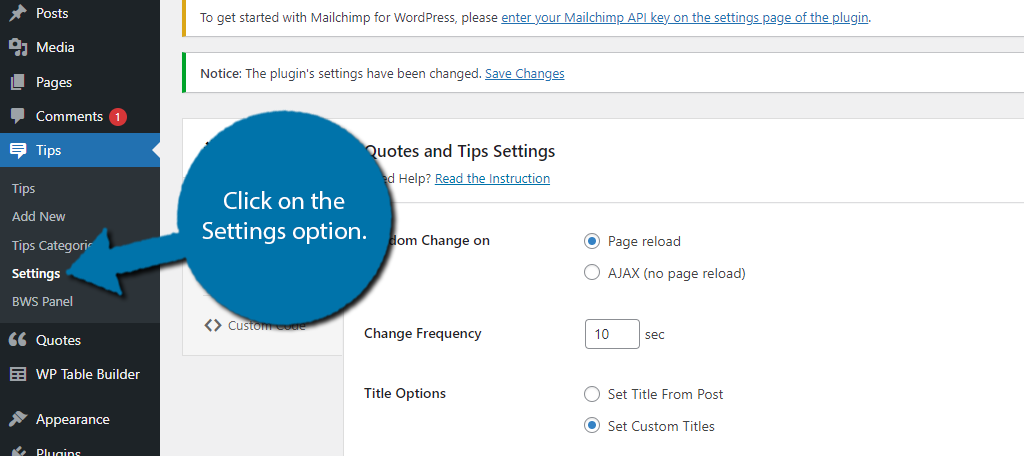 Note: You may notice that while you were in the Quotes section, it will bring you to the Tips section. The settings are shared between them, so don’t worry.