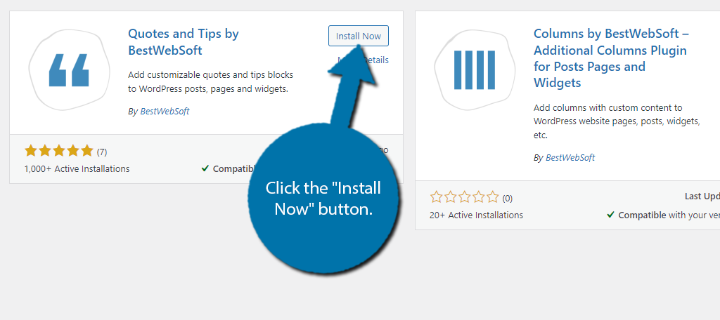 Search for Quotes and Tips by BestWebSoft in the available search box. This will pull up additional plugins that you may find helpful.