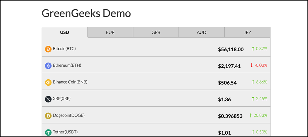 Now, view the live crypto ticker you just placed on the page. If you need to style some things differently, then go back to the widget and update some things.