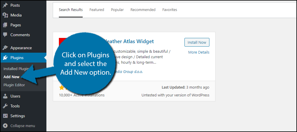 Scroll down until you find the Weather Atlas Widget plugin and click on the “Install Now” button and activate the plugin for use.