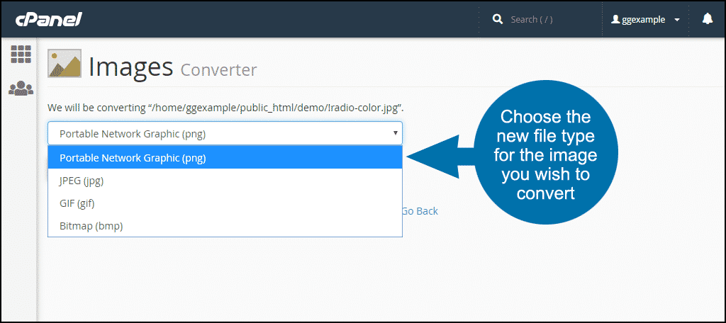Converting a single file is easy, but not very efficient if you have a lot of images to convert. Luckily, the cPanel Images Converter can change all of the image files in a directory with a few clicks.