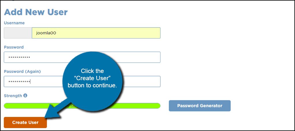 Once you fill in the username and password credentials, click the “Create a user” button to continue.