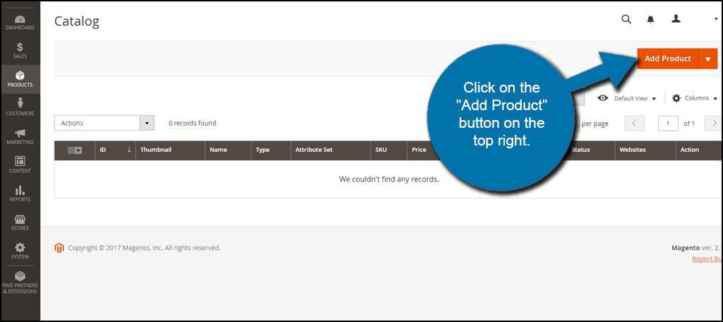 Next, you want to add at least one product to your store complete with custom attributes you want to use. To do this, go to the Products section and click “Catalog.”