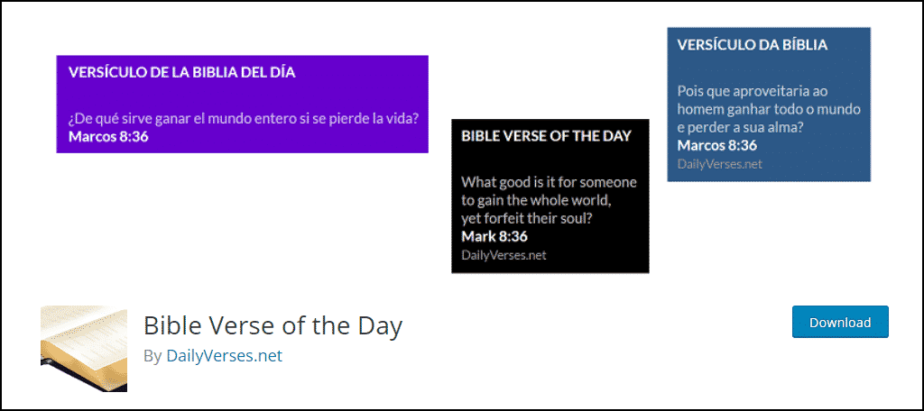 The Bible Verse of the Day plugin will display a random quote from the bible. This is a great addition to any Christian blog. If you are looking for a good spot to display it, I recommend doing so in your sidebar area. This will make it visible on most pages and posts.