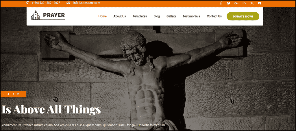 The Church Lite theme is a great choice. Similarly to the last theme, it has a huge spot to add images of your church and congregation on the homepage, but it has a much more modern design. It also has a pro version that you may consider upgrading to.