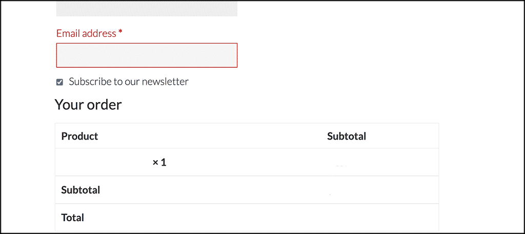 Remember, the plugin only adds a simple little checkbox to the checkout cart portion of WooCommerce. It simply says “Subscribe to our newsletter.”