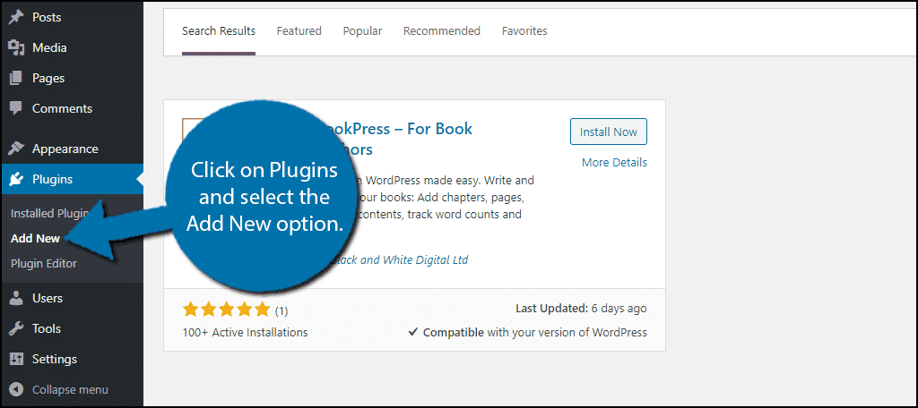 Scroll down until you find the BookPress plugin, click on the “Install Now” button, and activate it for use.