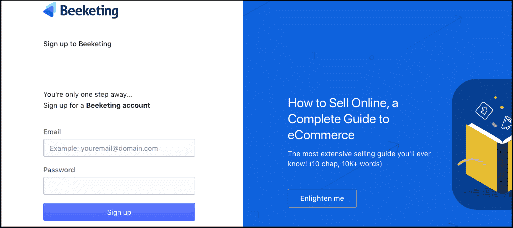 When you click on the “Let’s Connect” button, a popup window from Beeketing will show. You will need to register for an account with them. An email and password will do.