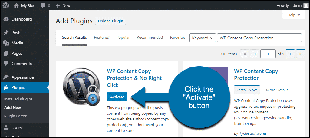 The copy protection WordPress plugin we’re going to use is called WP Content Copy Protection & No Right Click.