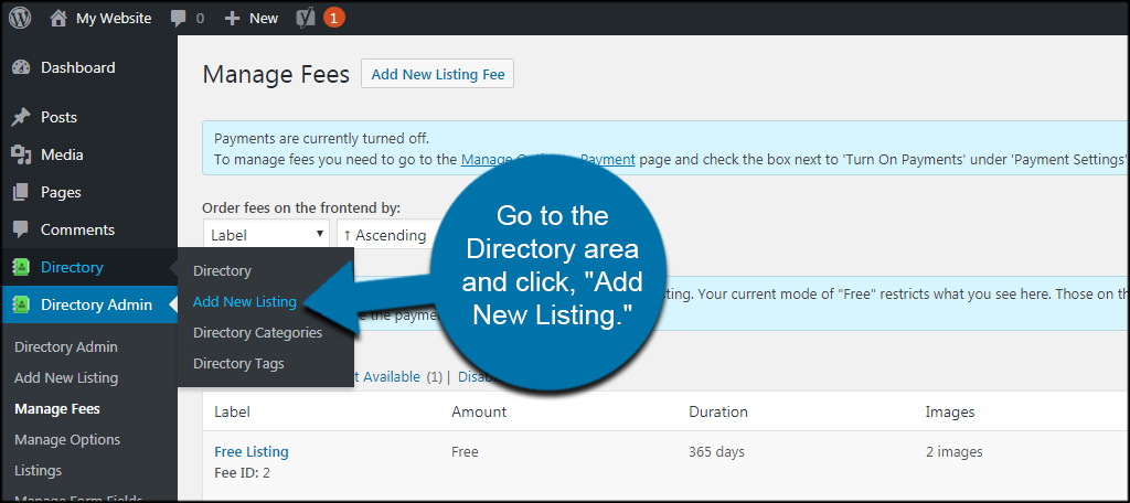 If you want to charge users to post their businesses, you’ll need to set up how fees are handled. This option gives you the ability to modify terms and how much each option is charged. For example, you can make a “free listing” offer for 30 days and charge $10 if someone wants to be listed for a year.