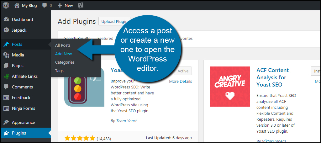 Yoast will install a new section to the WordPress editor. This gives you access to a variety of tools that are beneficial for creating and marketing content. It also has a function to control some of the meta data within a post or page.