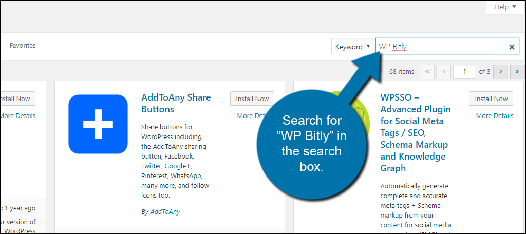 Search for “WP Bitly” in the search box. This is similar to other plugins that can also be used.