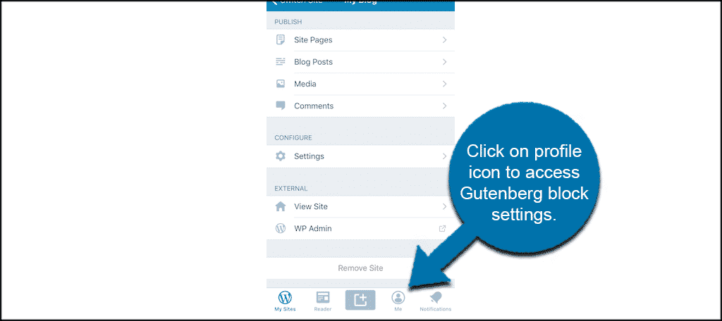 The block editor is not turned on. By default, the WordPress mobile app still uses the classic editor and allows you to jump back and forth. In order to turn on the block editor, you need to click on your profile icon at the bottom of the app.
