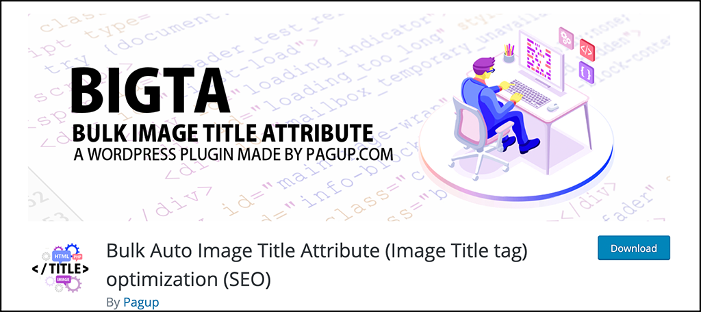 Bulk Auto Image Title Attribute (also known as BIGTA) will automatically add title tags (attributes) to your images (into HTML code). It does this depending on your selections and needs.