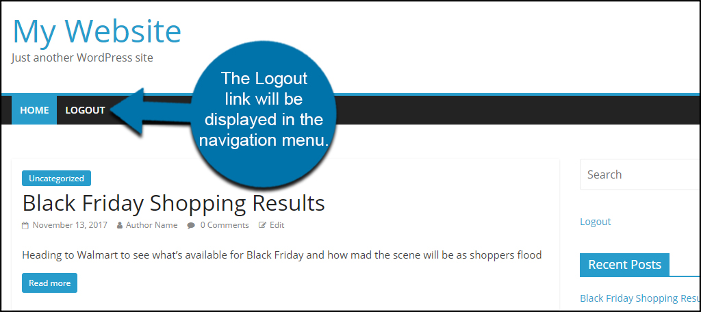 What if you want a WordPress navigation logout link in the menu? This will let users click to log out of the system directly from the navbar in your website.