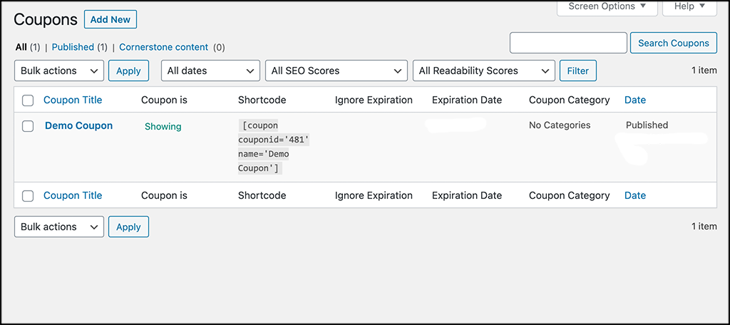 Now, click through to the “Expiration” tab and set an expiration date for the new coupon you are currently building.