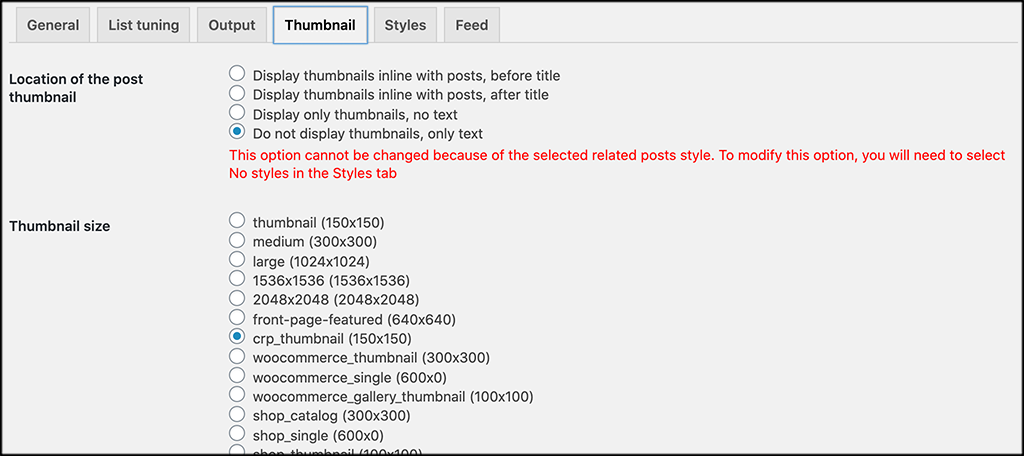 The “List Tuning” tab is actually where you will set up the related posts list and how it displays, what it displays, and all other aspects of the list.