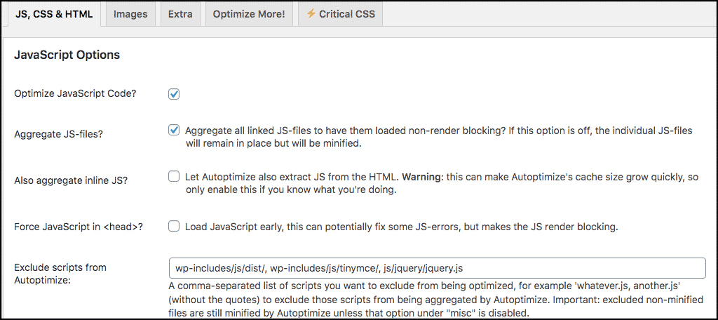 Below, I will show you how to install, activate, and use the plugin. That being said, along with the ability to combine JavaScript in WordPress and combine external CSS, Autoptimize also gives you the ability to:
