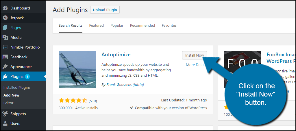 Scroll down until you find the Autoptimize plugin and click on the “Install Now” button and activate the plugin for use.