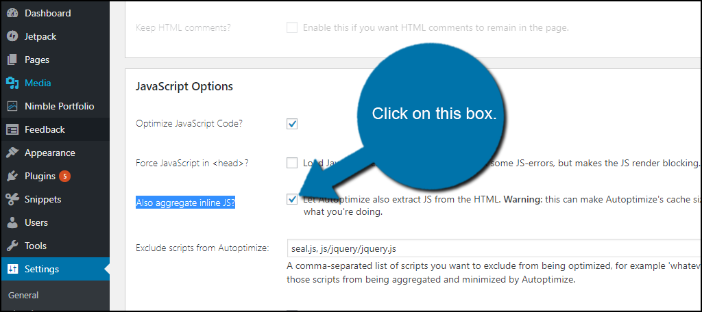 You will find this plugin’s settings page under Settings. Click on the Autoptimize option. This page will allow you to freely change the settings of the plugin. Always pick what works best for your website.