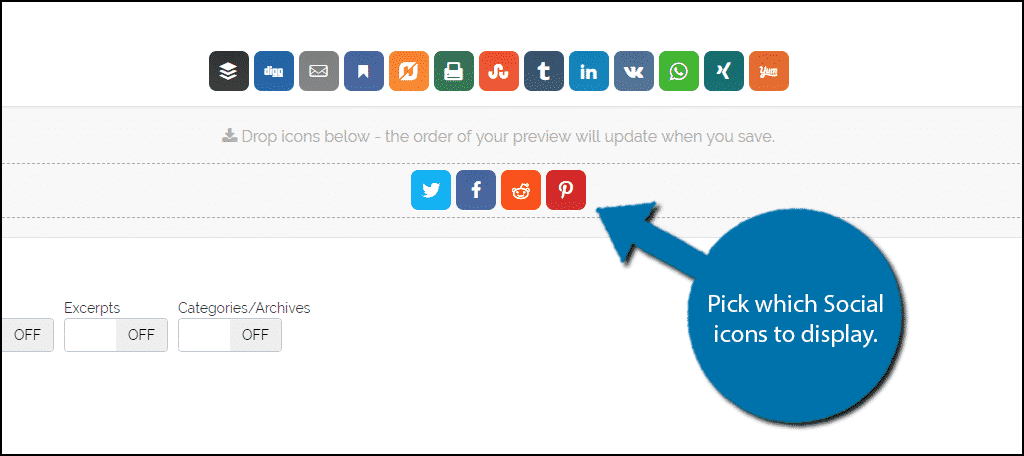 Underneath this, you can select where the social icons will appear. You can select the homepage, pages, posts, excerpts, or categories/tags. Simply enable the icons in the locations that work best for you.