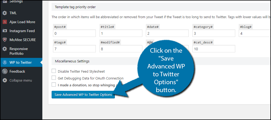 Congratulations, you have successfully set up the WP to Twitter plugin. The settings can be changed at any time from the plugin’s settings page.