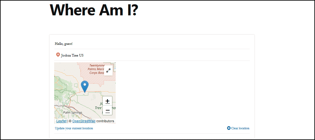 If you want to show visitors their current coordinates, you can do that with a widget or a shortcode in a page or post. The shortcode method is very flexible, so we’ll use that for our demonstration.