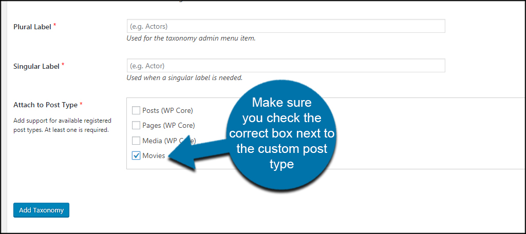 Do the same for any taxonomies you need to add as well.