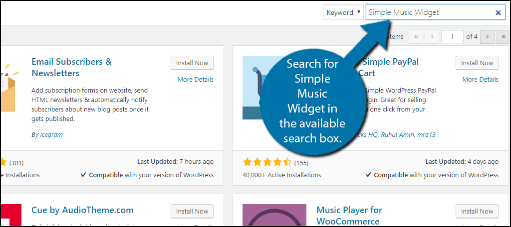 Search for Simple Music Widget in the available search box. This will pull up additional plugins that you may find helpful.