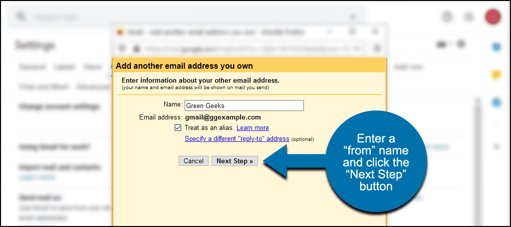 In the next window, enter the name you want to appear as the “sender” or “from” name of the outgoing email.