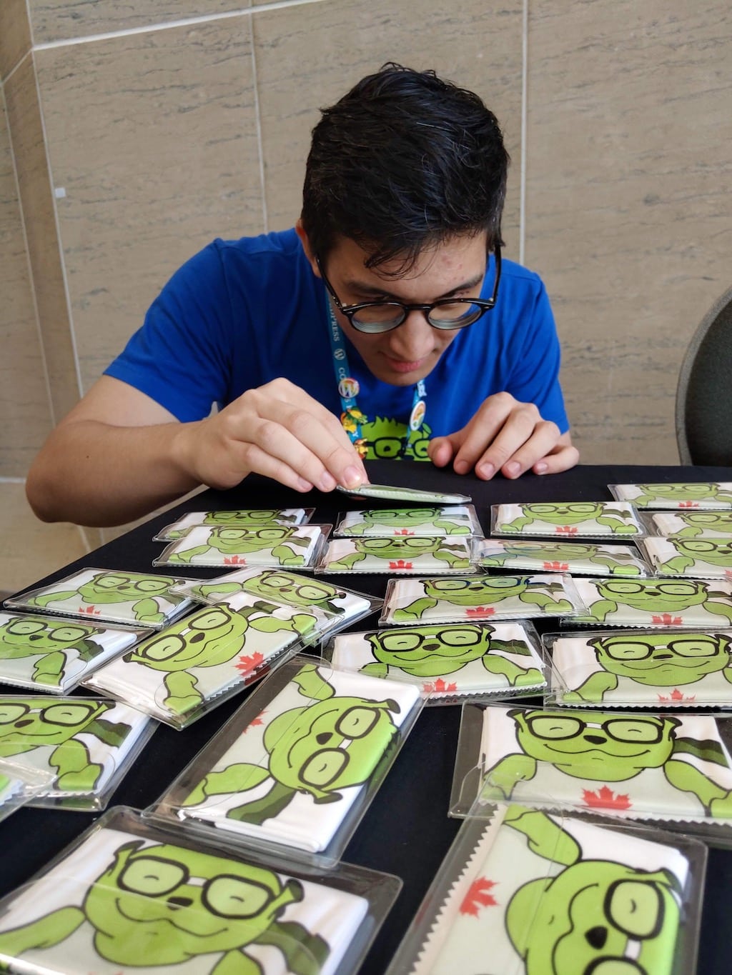 Getting to this WordCamp was unusually tense this time around. This is mainly due to an unforeseen shipping delay only rectified the night before. It would have caused us to receive our free swag on Monday the 15th, well after the camp was done.