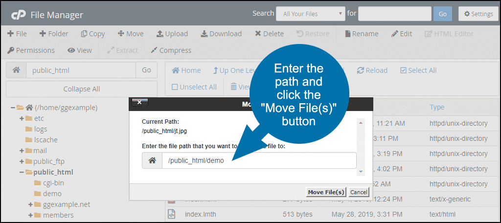 Moving a File Using the cPanel File Manager