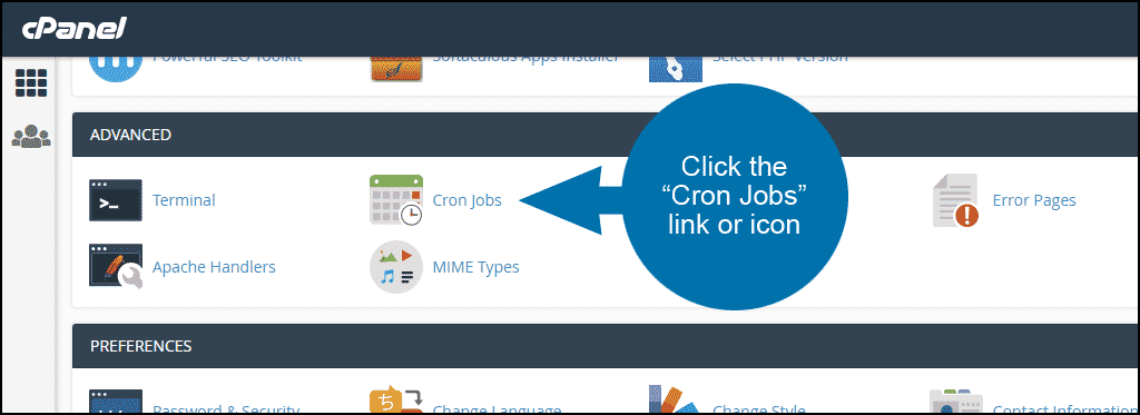 In the “Advanced” section, click the “Cron Jobs” link or icon.