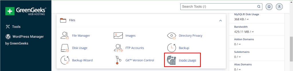 At GreenGeeks, you’ll notice the inode term is replaced with “File Usage.” That’s because they are essentially one of the same thing. We’ve just simplified the terms to make it easier for some of our customers.