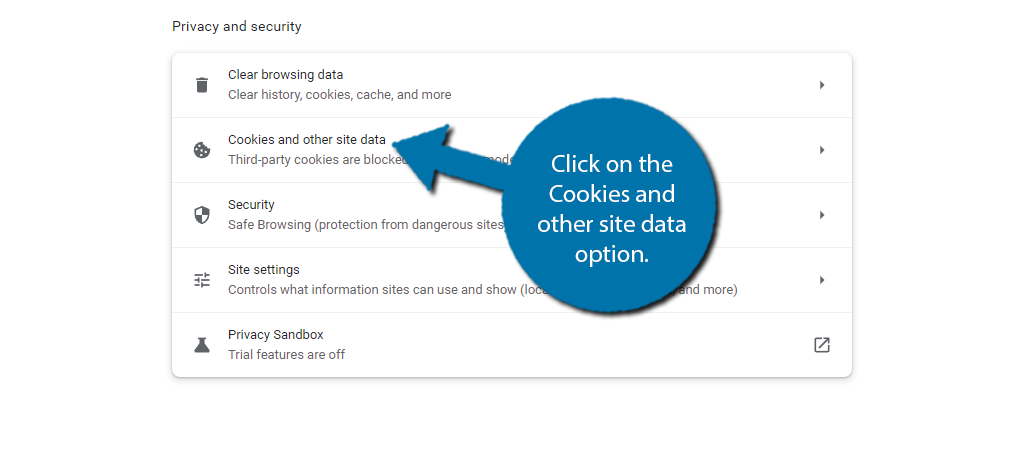 Once here, click on the Cookies and other site data option.