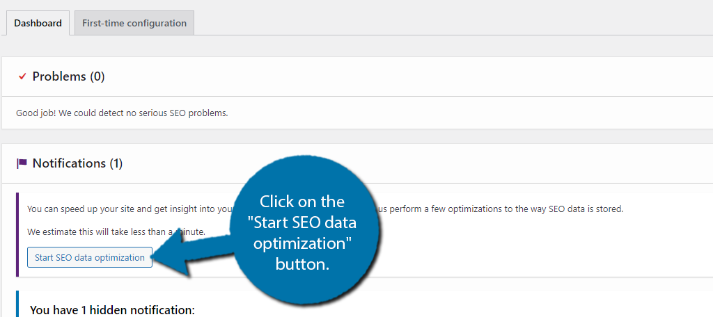 Locate the Notification section and click on the “Start SEO data optimization” button.