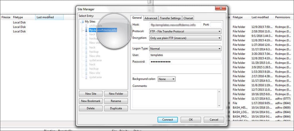 There are several types of logons for FileZilla. If you set this to “Normal,” you’re able to input the password and username to be saved in the system. Setting it to “Ask for password” requires you to enter the password every time you log into your FTP account. This could be ideal if you use a public computer. The “Anonymous” account gives you access to limited FTP on the server, but you may not be able to access vital areas. Interactive works like asking for a password, but it will ask for every connection you make.