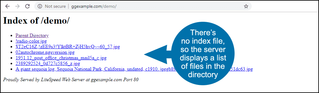 That is the default configuration for most web servers. In most cases, though, we don’t want to display the contents of a directory. Listing our files like that is a breach of privacy. But worse, it can be a security risk.