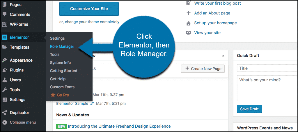 Accessing Role Manager in Elementor is quick and easy.