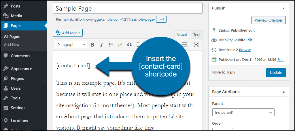 If you don’t use the Gutenberg editor in WordPress, don’t worry, you can still use the plugin. I’ll show you how to display the business card widget using a shortcode.