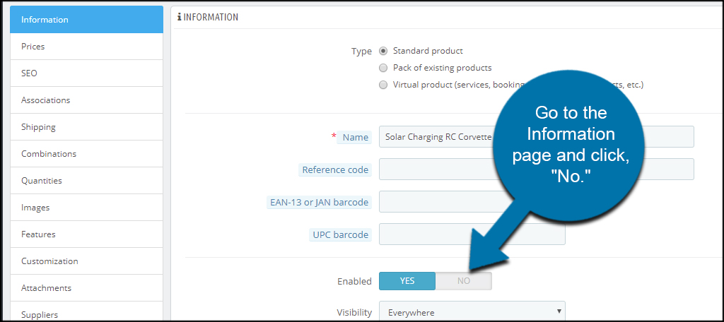 By default, PrestaShop enables all products you add. This means they are live as soon as you hit the save button. However, this might not be ideal in every situation. After all, it could take a bit of time to add all of the items important information.